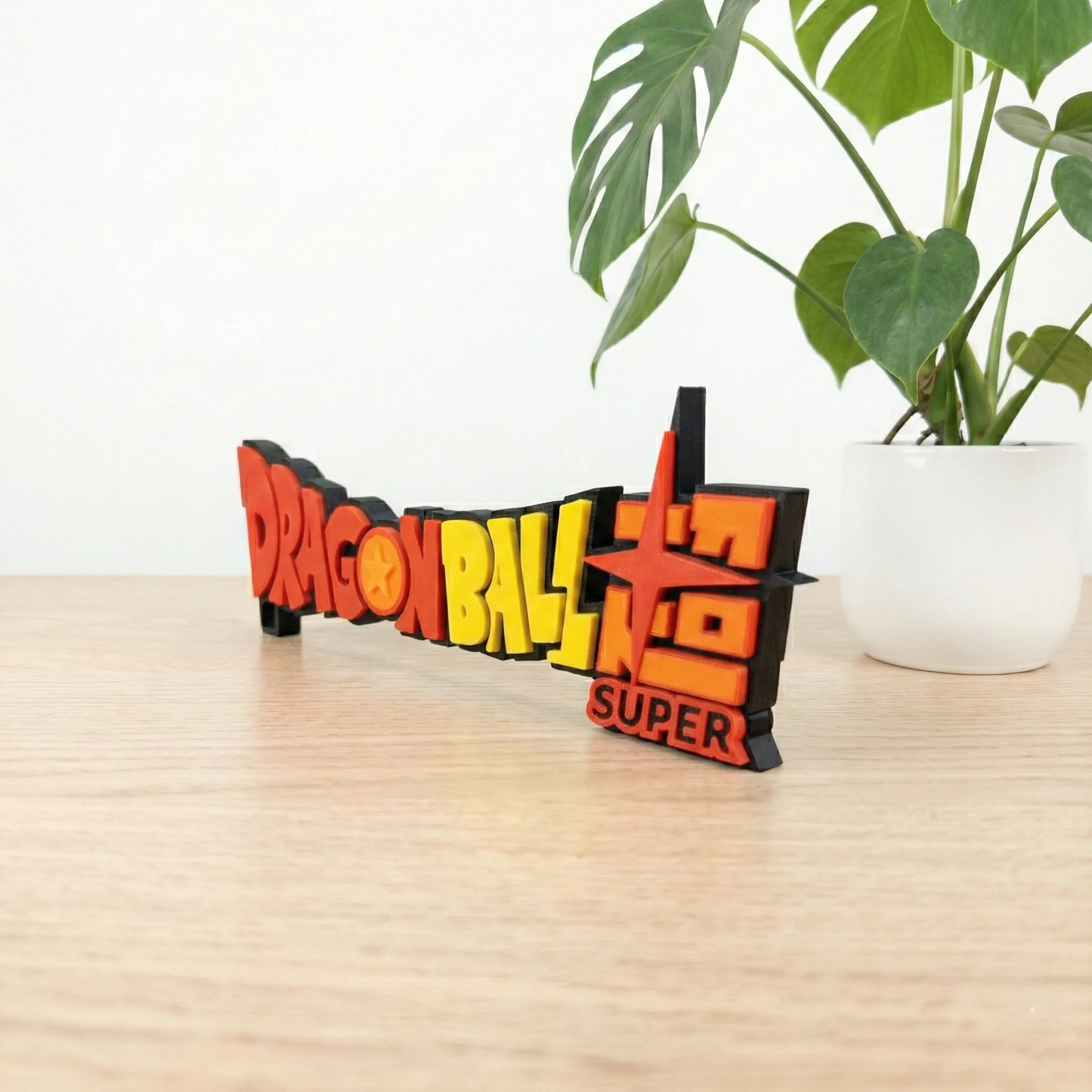 Eleva tu Ki al máximo con este logo de Dragon Ball Super impreso en 3D. Una pieza decorativa esencial para cualquier fan de Goku y Vegeta, con colores vibrantes y un acabado en relieve espectacular.